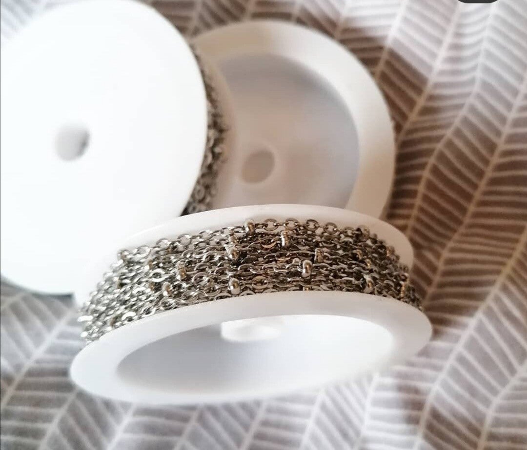 Dit is zilver bolletjes jasseron. Het jasseron is RVS. De prijs is per meter. (Als je een grote bestelling plaatst en je twijfelt of het wel door de brievenbus past stuur mij dan een berichtje op onderdelen.by.lies op insta als het niet door de brievenbuspast dan kan je dat aanpassen bij de verzendmethode)