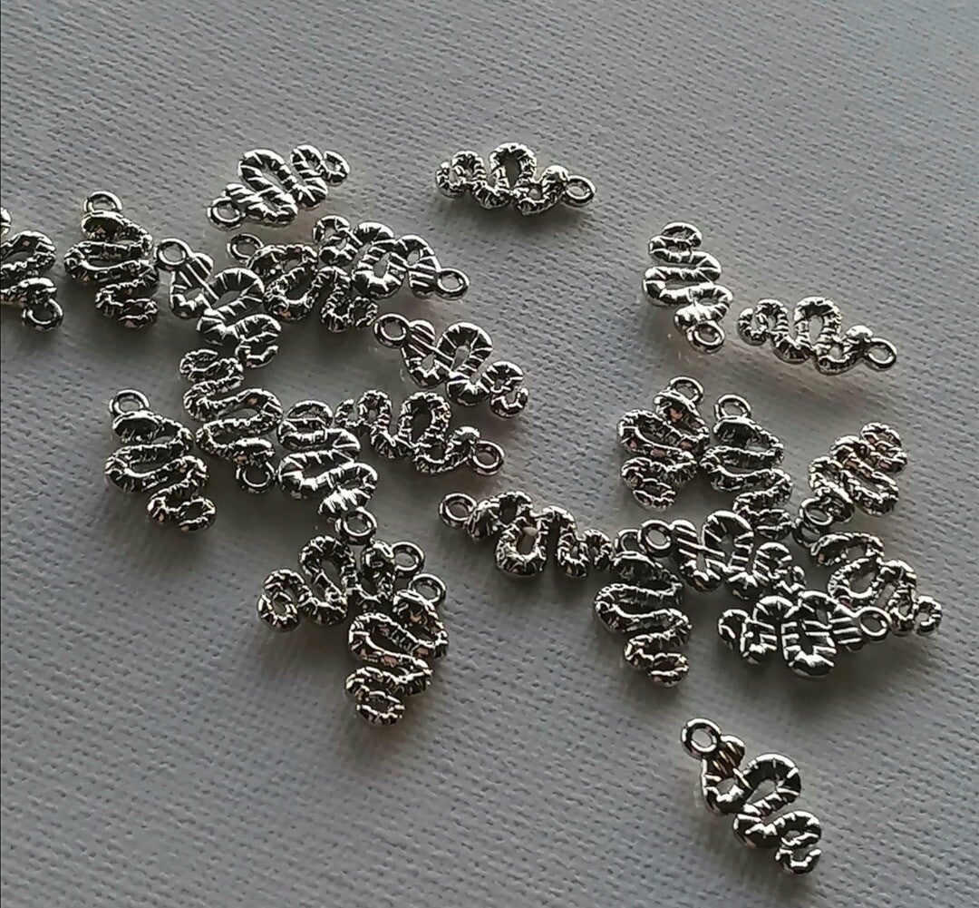 Dit zijn slangen bedels. De prijs is per 2 stuks. Ze hebben een zilveren kleur. (Als je een grote bestelling plaatst en je twijfelt of het wel door de brievenbus past stuur mij dan een berichtje op onderdelen.by.lies op insta als het niet door de brievenbuspast dan kan je dat aanpassen bij de verzendmethode)