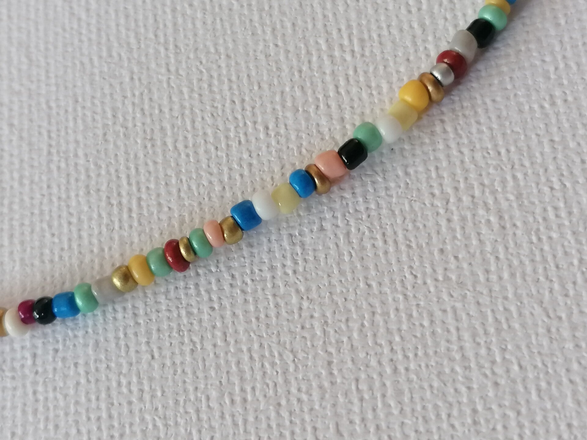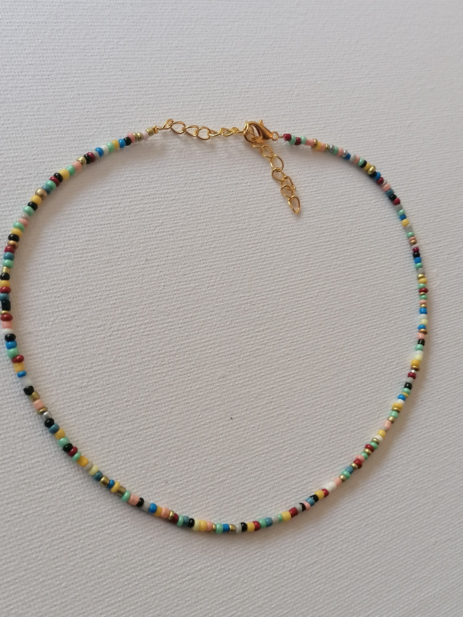 Dit is de multi color kralen chocker. Hij is super leuk te combineren met de zoetwater parel smiley kralen ketting.