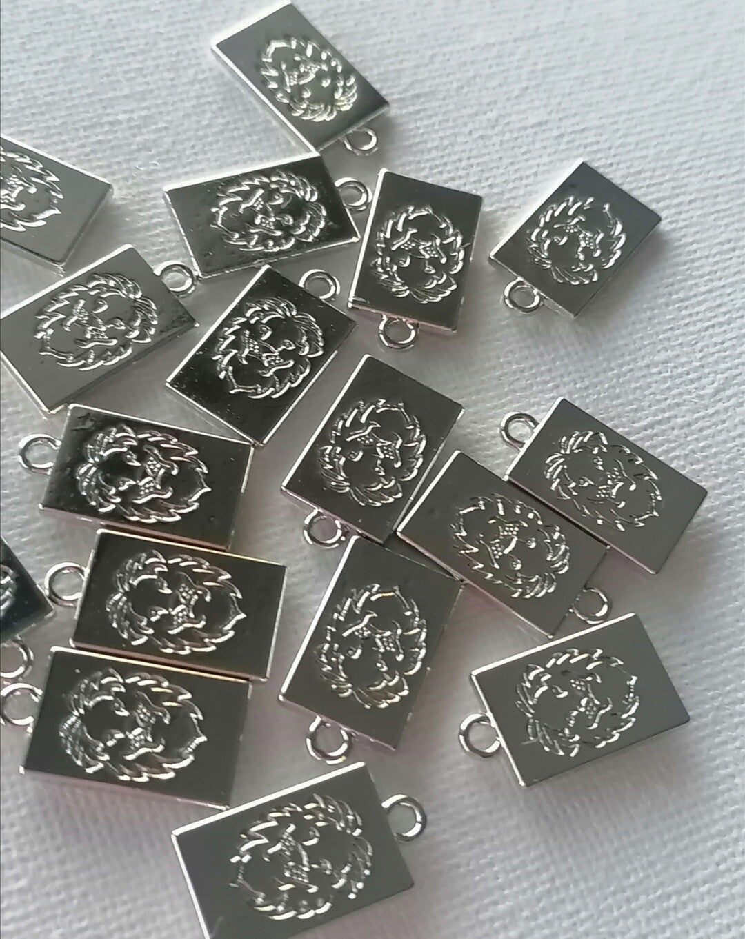 Dit zijn zilveren lion kop tags. De prijs is per 2 stuks. Ze hebben een zilveren kleur. (Als je een grote bestelling plaatst en je twijfelt of het wel door de brievenbus past stuur mij dan een berichtje op onderdelen.by.lies op insta als het niet door de brievenbuspast dan kan je dat aanpassen bij de verzendmethode)