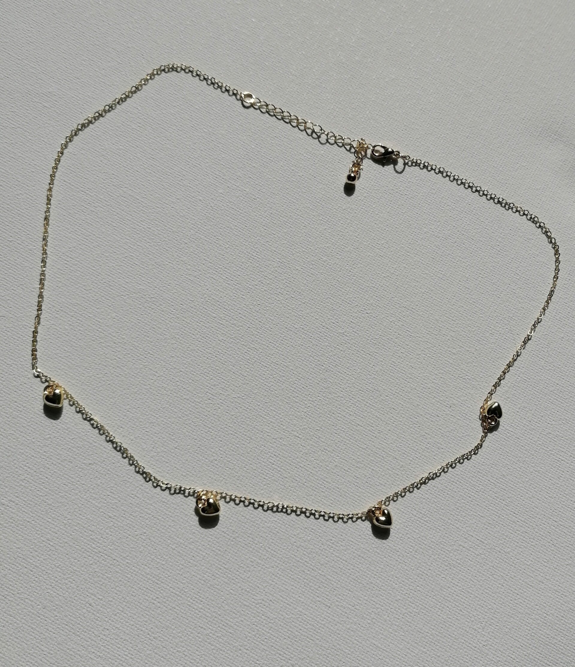 Dit is een super leuk goud kettinkje met 4 hartjes. Het kettinkje heeft een verlengstukje van 7+ cm en is volledig rvs!