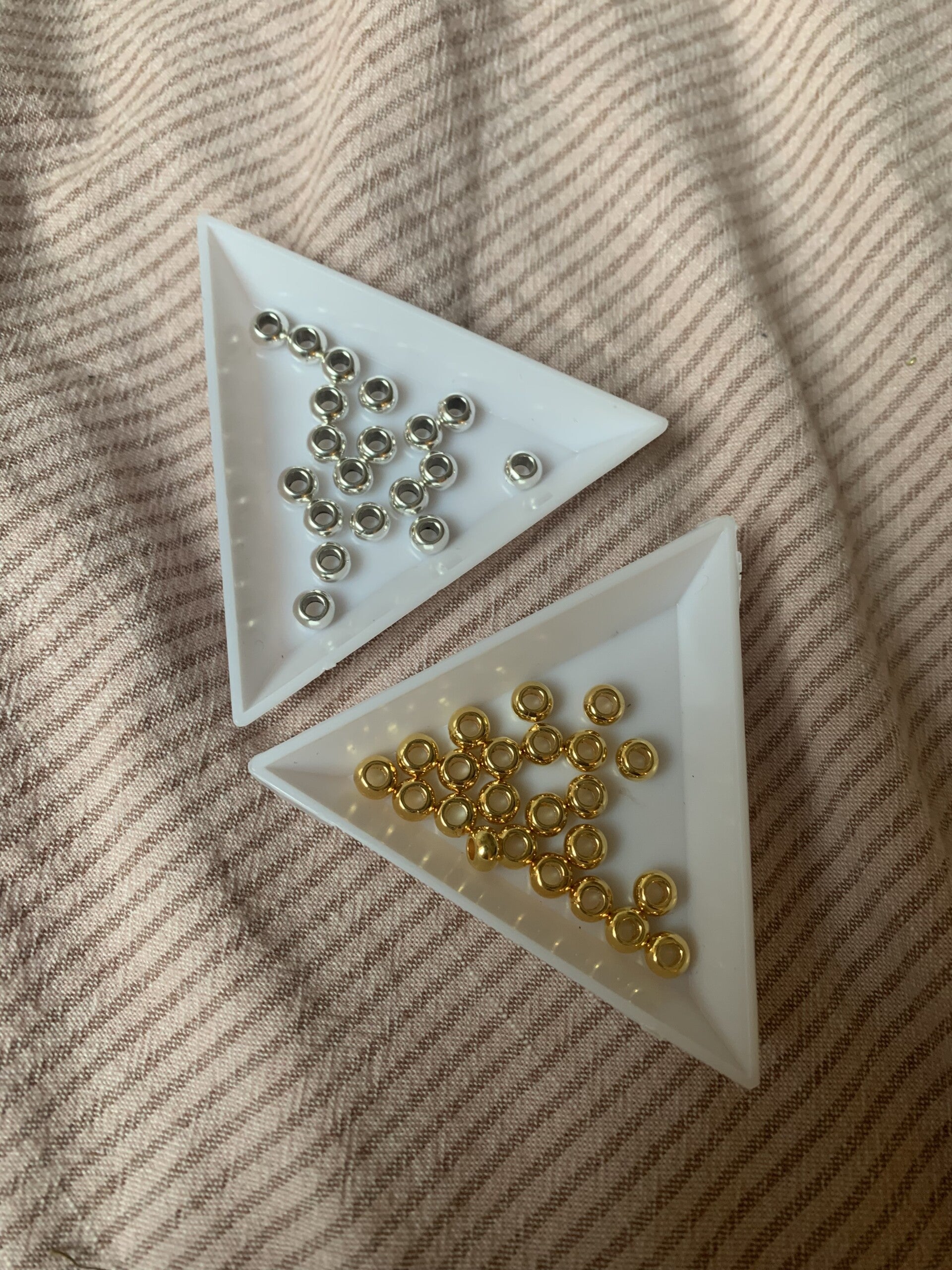 Dit is een dq kralen pakket. Je krijgt er 8 goud en 8 zilver! Deze kralen zijn leuk te combineren met het smile lint